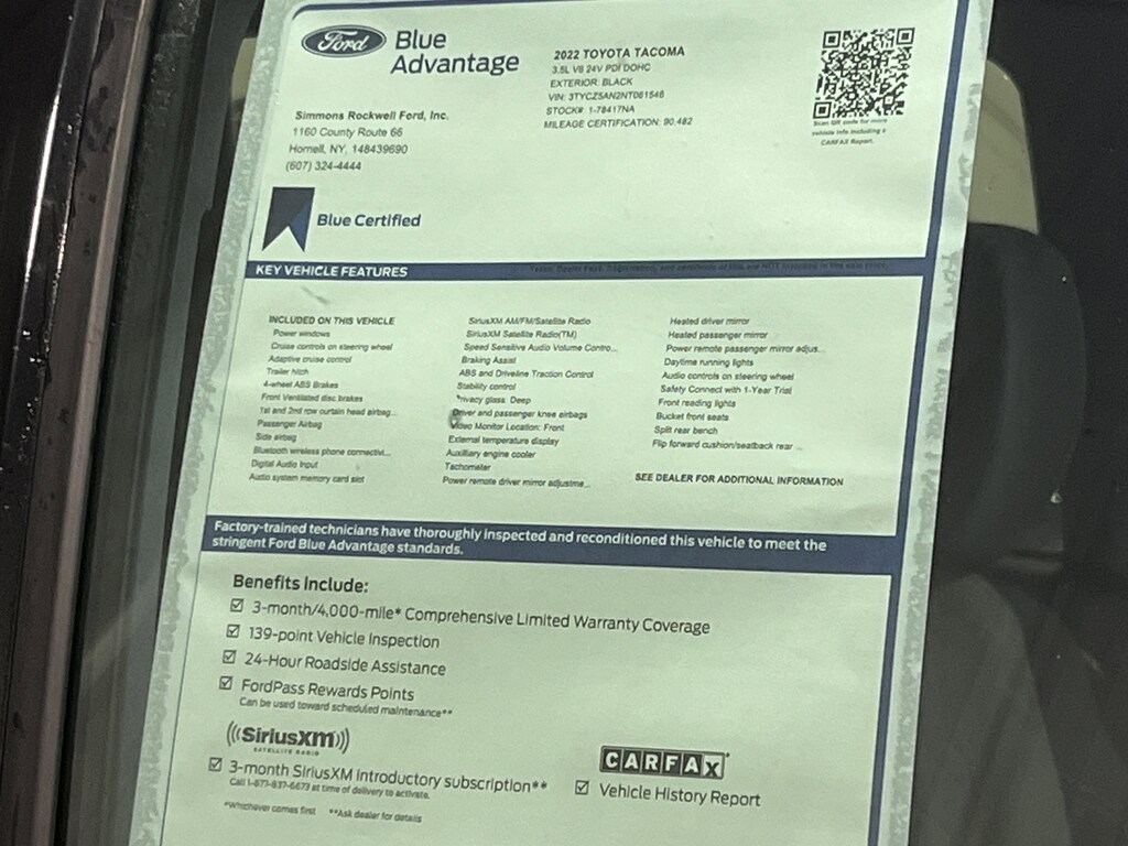 We're excited to offer this reliable 2022 Toyota Tacoma 4WD . Wireless Phone Connectivity, Wi-Fi Connect with up to 2GB within Mobile Hotspot Internet Access, Variable Intermittent Wipers, Vanity w/Driver And Passenger Auxiliary Mirror, Trailer Wiring Harness.